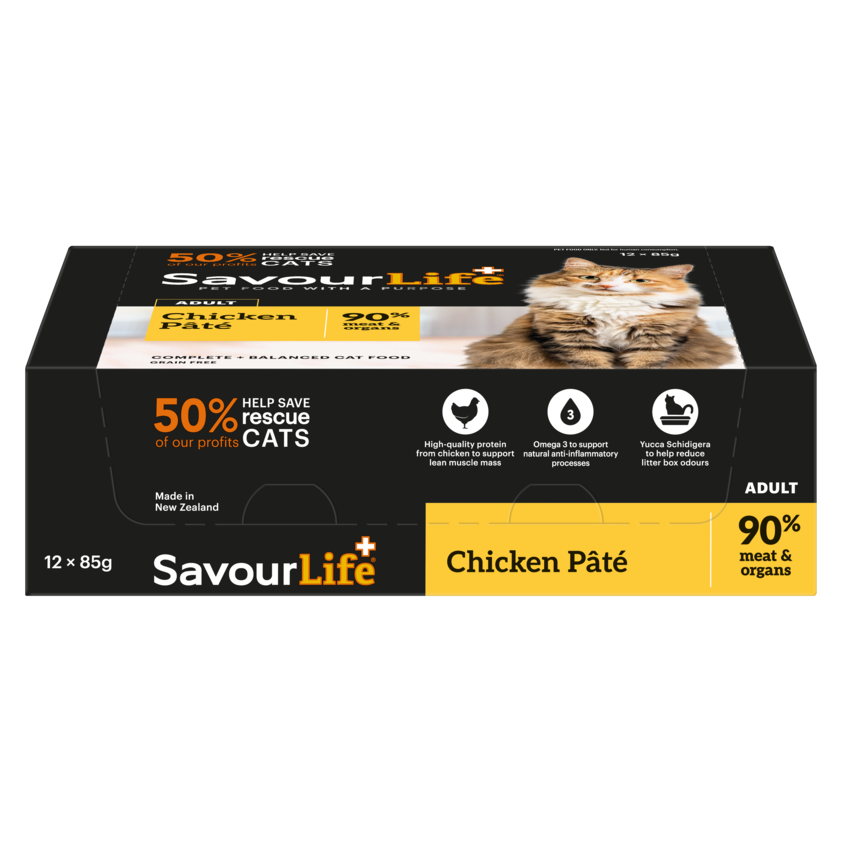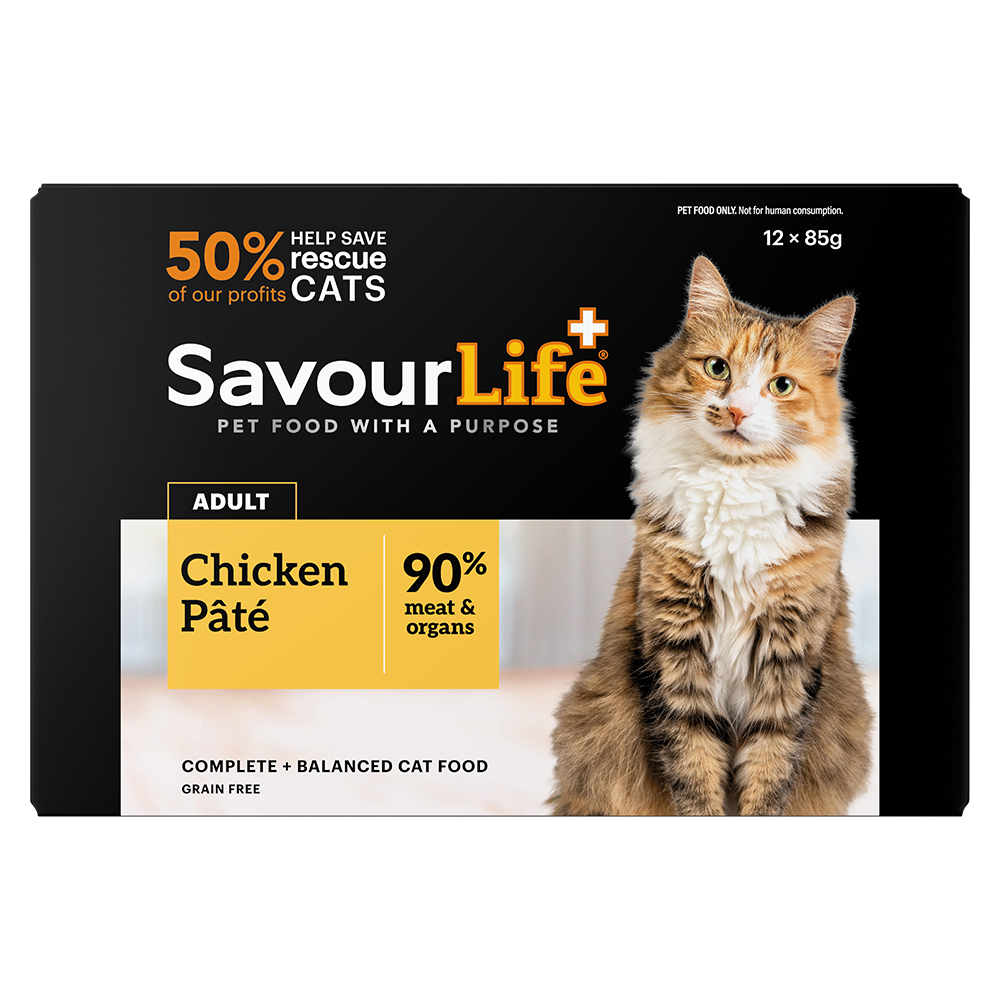 SavourLife Chicken Pâté Adult Cat Food is a premium, grain-free recipe crafted to deliver complete and balanced nutrition for adult cats.