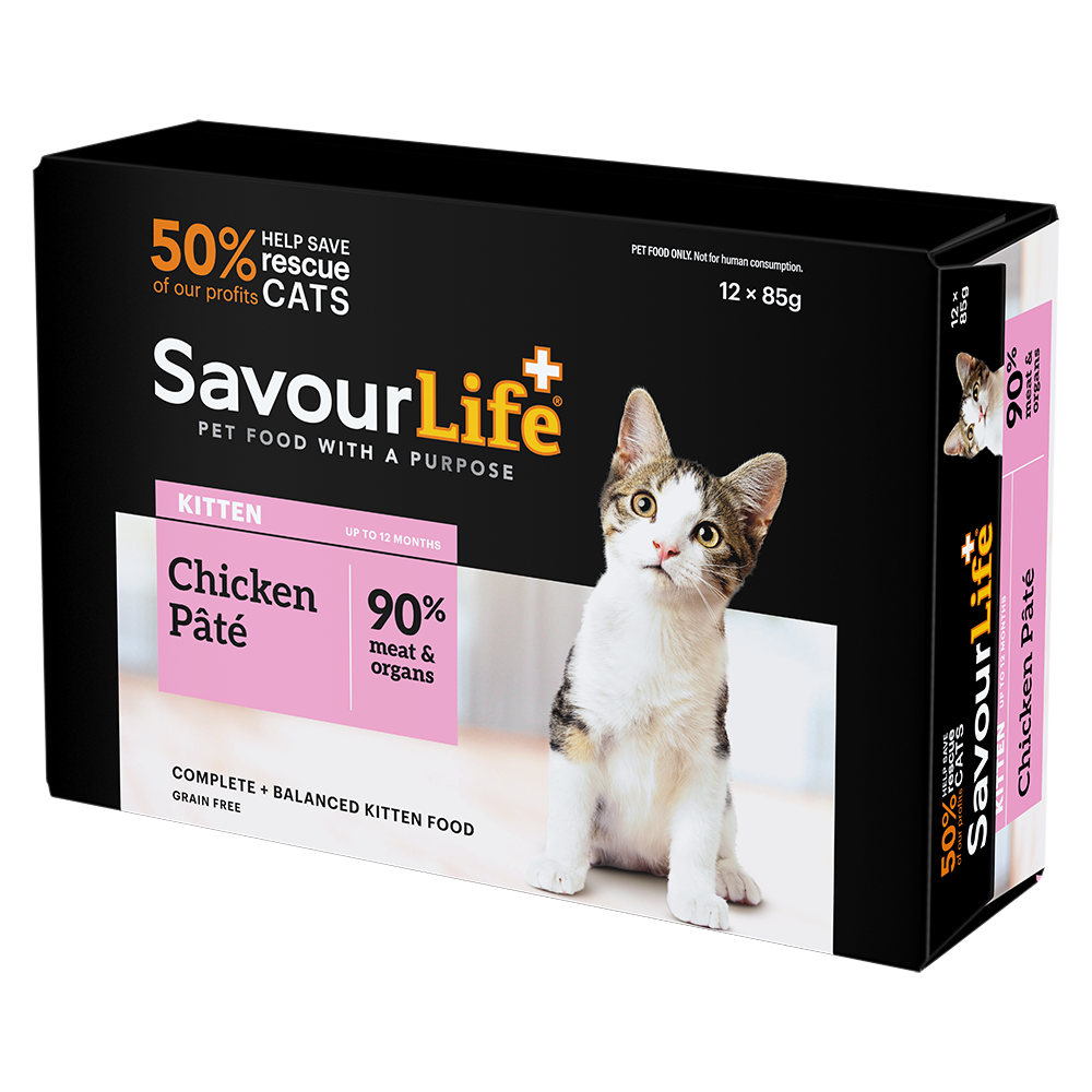 SavourLife Kitten Food Chicken Pâté is a premium, grain-free formula crafted to support growing kittens with complete and balanced nutrition.