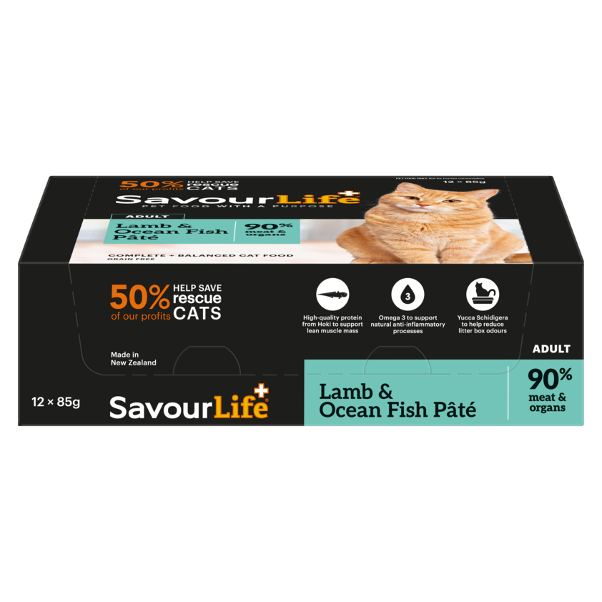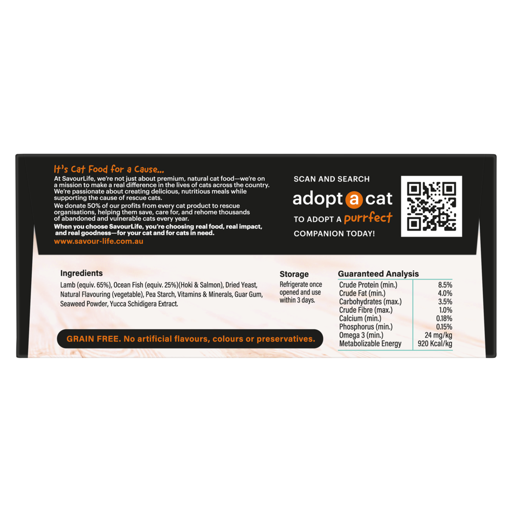 SavourLife Lamb & Ocean Fish Pâté is a premium, grain-free formula designed to deliver complete and balanced nutrition for cats of all life stages.