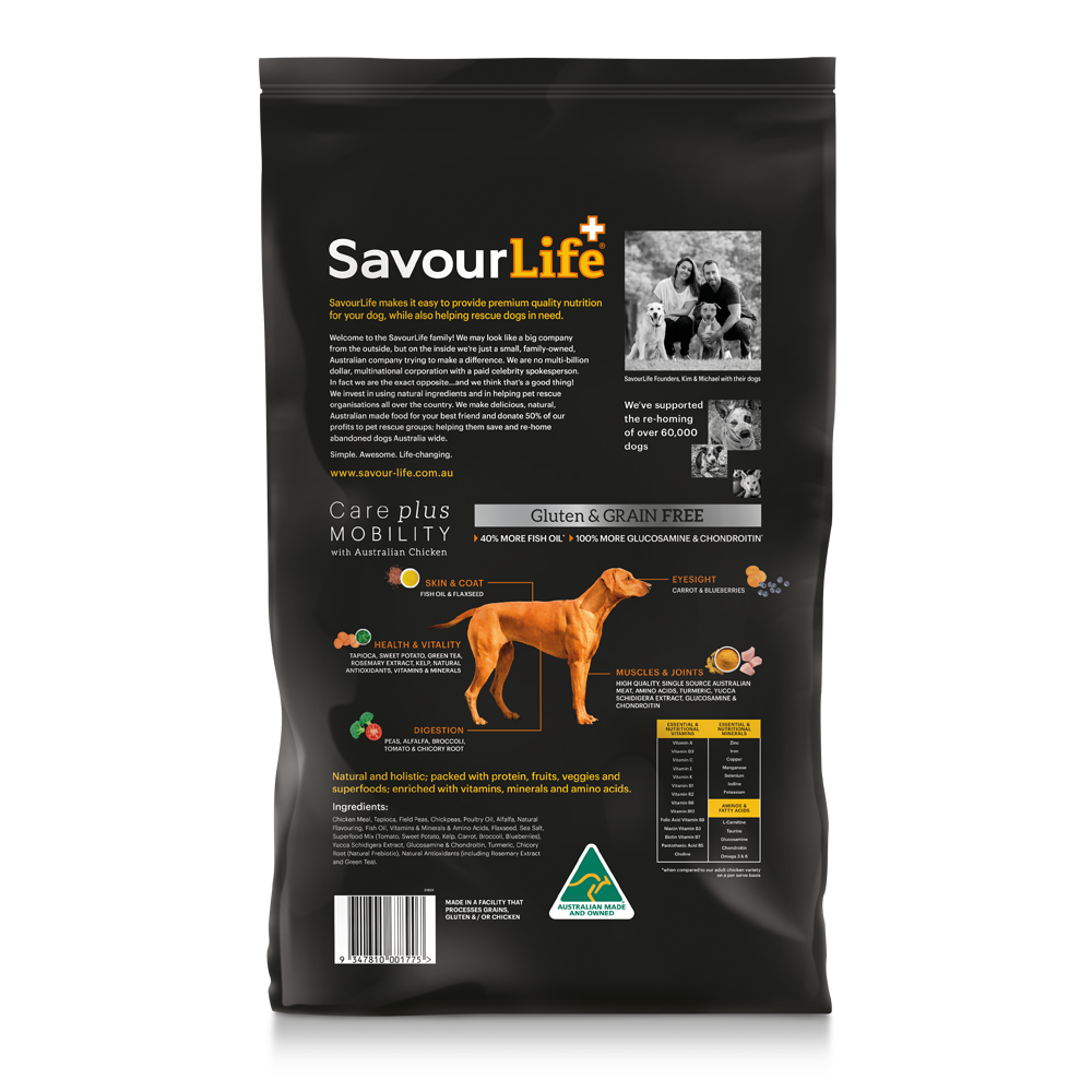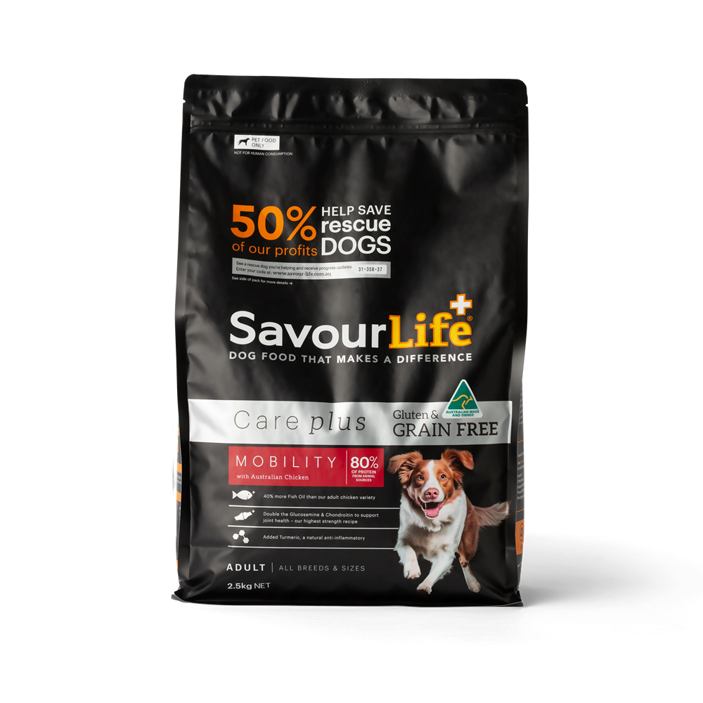 SavourLife’s Grain Free Care Plus Mobility has been created for active dogs and those susceptible to joint and muscle pain throughout various lifestages.