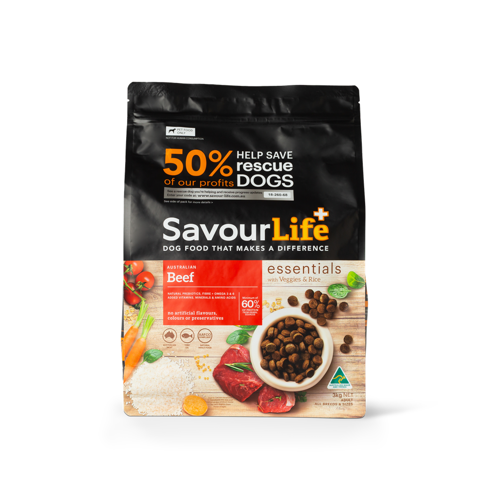 SavourLife Essentials Beef with Veggies & Rice is an all-natural, Australian-made and owned dog food, made with Australian meat and packed with seasonal vegetables, fish oil, plus vitamins, minerals, natural pre-biotics and amino acids, tailored to meet the nutritional needs of adult dogs. There are absolutely no artificial flavours, colours or preservatives. Beef is an option for dogs who like something a little different.