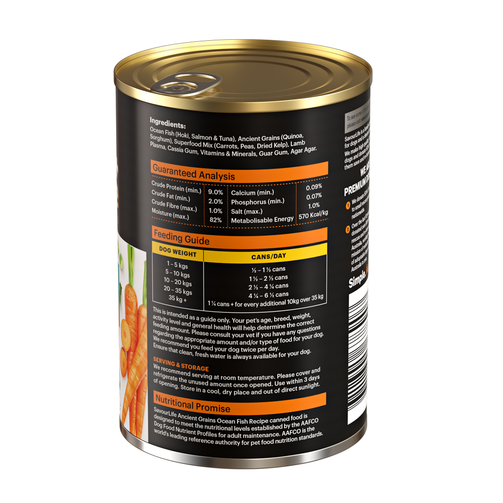 SavourLife's Ancient Grain’s canned dog food recipes have been specially batched to consist of 90% Meat, Organs and Superfoods; and topped with all the essential vitamins & minerals to create a complete and balanced meal. The result is an irresistibly tasty, loaf-like meaty food that is packed with nutrients that closely mimic your dog’s ancestral diet ensuring they thrive every day.