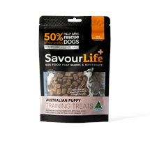 SavourLife’s first puppy specific Puppy Chicken Training Treat is packed full of meaty goodness and inclusions like DHA GOLD aimed at helping your puppy grow and develop to be the best dog they can be. Expanding on our extremely popular Training Treats range, our treats made right here in Australia from real Australian meat and all natural ingredients. This ensures your puppy is getting nothing but the best. Great to have on hand when you are walking, training or just having fun! We have done the hard work for you! These tasty morsels are perfectly sized in little cubes to easily train and reward. No more cutting up meat or trying to break treats with your hands! Our Puppy Chicken Training Treats with DHA GOLD are high-value; that’s training speak for ‘your dog will do anything for the taste!’ Not only do dogs love them, they are healthy too! They are enriched with DHA GOLD that aids with your puppies cognitive and retina development. Made with Australian Chicken that is great for fussy eaters while being gentle on tummies. Sweet Potato, which puppies not only love the taste of, are also rich in beta-carotene, a mineral essential in the supported development of bone growth, skin and vision. Vitamins and minerals that support the creation of the bodies essential building blocks. As an added bonus they are low in fat and salt.